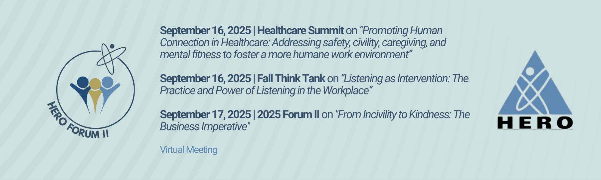 Come join thought leaders in our profession at the 2025 HERO Forum II. Together, we’ll: Examine assessment tools and effective listening methods that can uncover the hidden causes and costs of incivility in your organization; Learn practical strategies that enable a culture to support profound care; Explore evidence-based best practices that have transformed workplaces all around the country; and Build a network of allies committed to making work a source of fulfillment, not depletion.